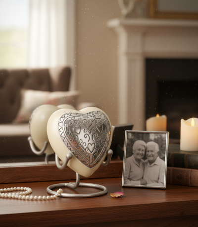 Honor loved ones with our exquisitely crafted heart-shaped metal cremation urn. 3-inch, 50ml, discreet back lid, sturdy metal stand (Gold, Black, Nickel). Premium packaging. For bulk business, contact us for customized solutions, competitive pricing. MOQ: 250pcs. Delivery: 1 month