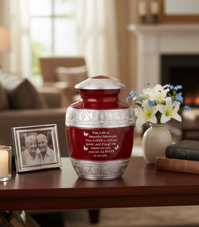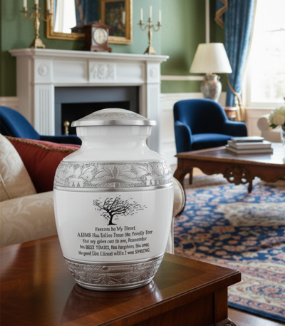 NU1004-Cremation Urn Silver embossing with White color Quote ( Customize )