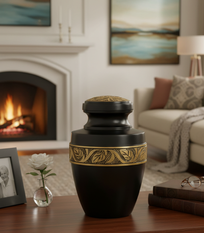 NH1007-Cremation Urn Black color with Gold Embossing