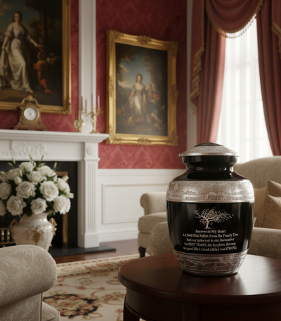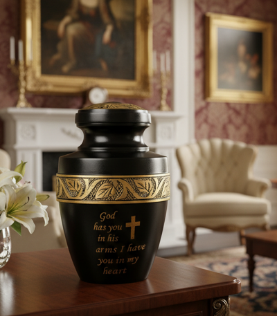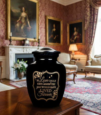 NU1001-Cremation Urn Black color with Gold Embossing Quote ( Customize )