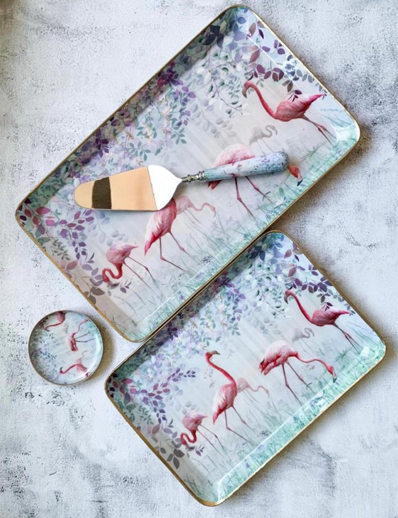 Metal Square Platter Set 4 Pcs with 4 Inch Bowl and Lifter