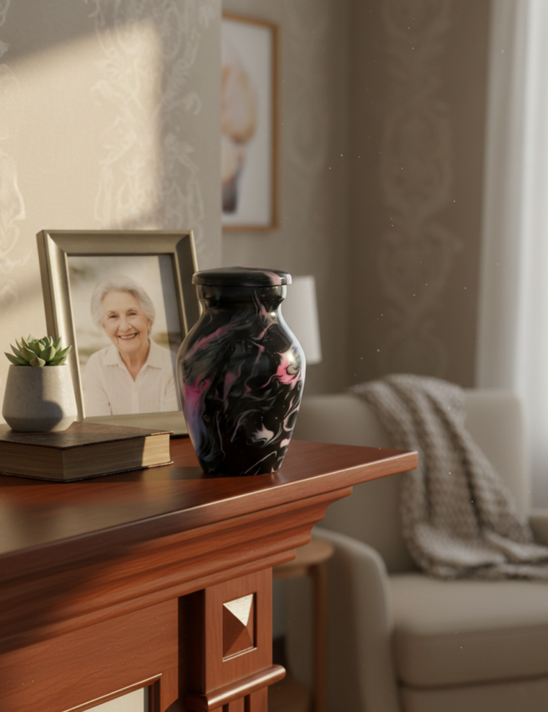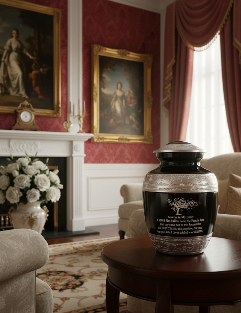 NU1003-Cremation Urn Silver embossing with black color Quote ( Customize )