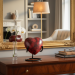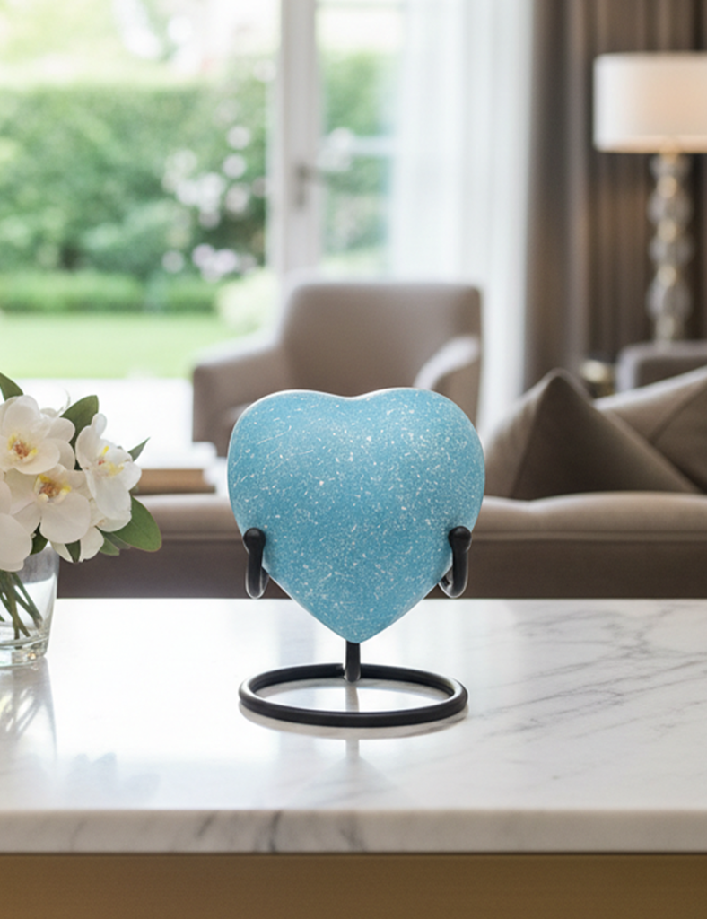 HN6001-Heart-Shaped Metal Cremation Urn with White Dots Fire Finish