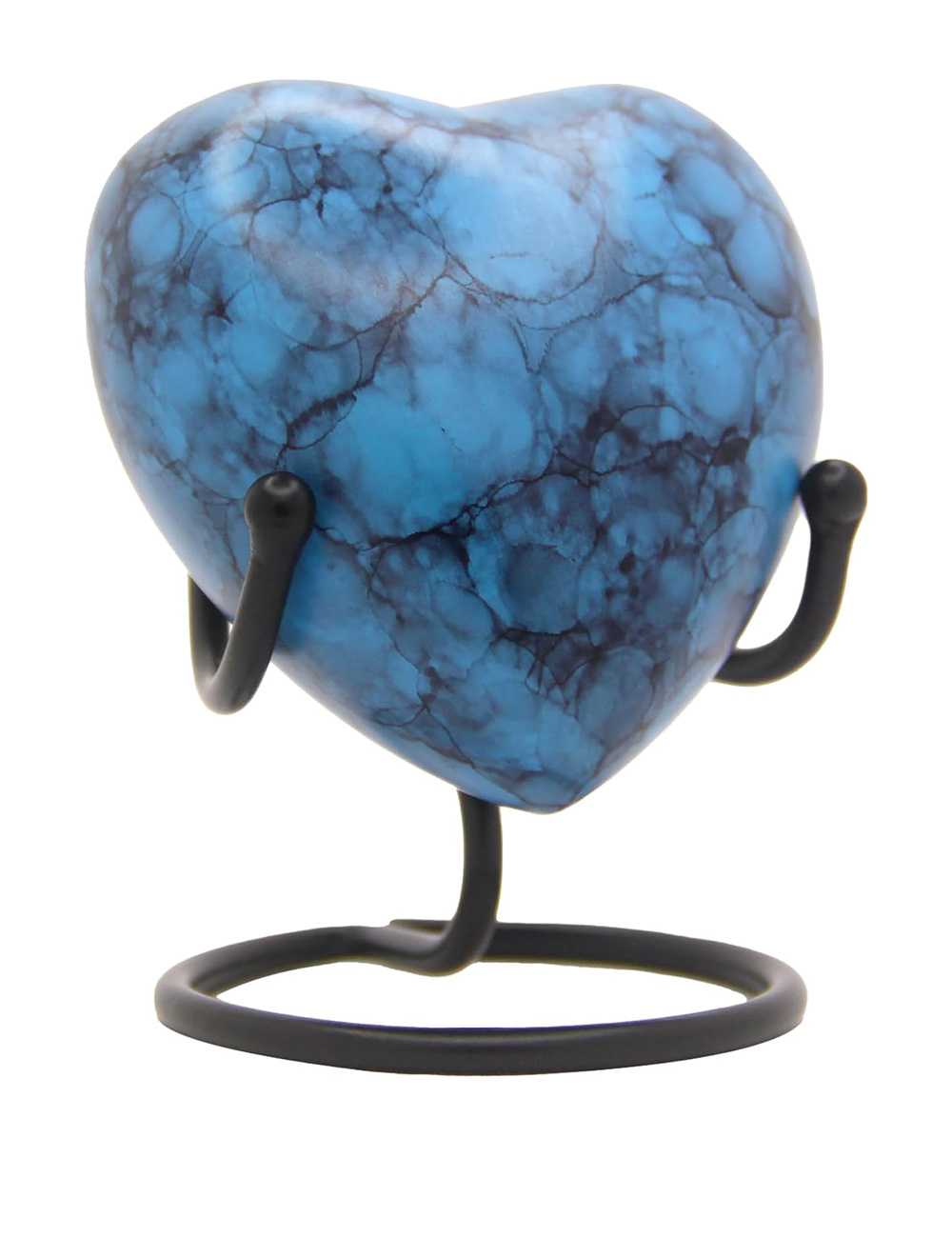 HN6003-Heart-Shaped Metal Cremation Urn with Blue Fire Finish