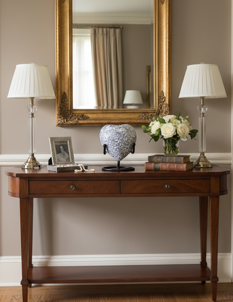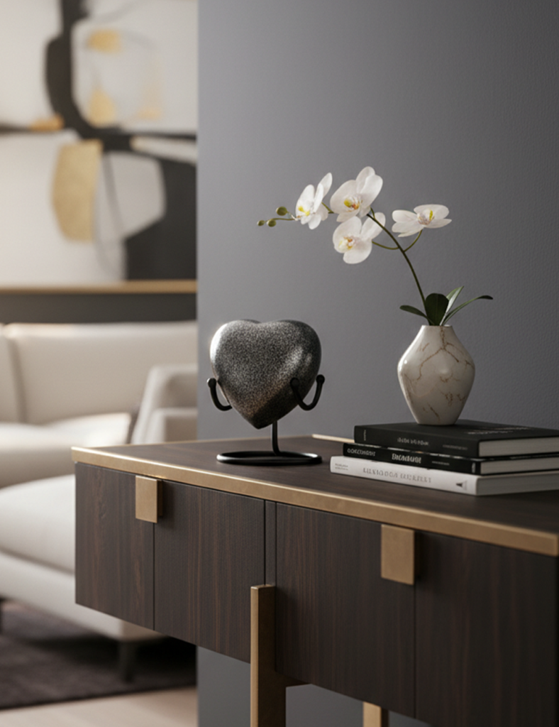 HN6009-Heart-Shaped Metal Cremation Urn with Brown Marble Color