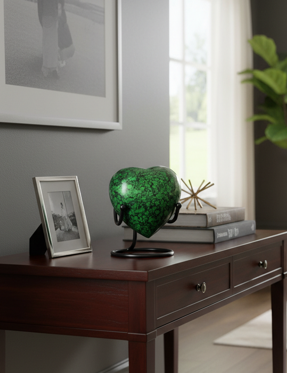 HN6011-Heart-Shaped Metal Cremation Urn with Marble Green Color