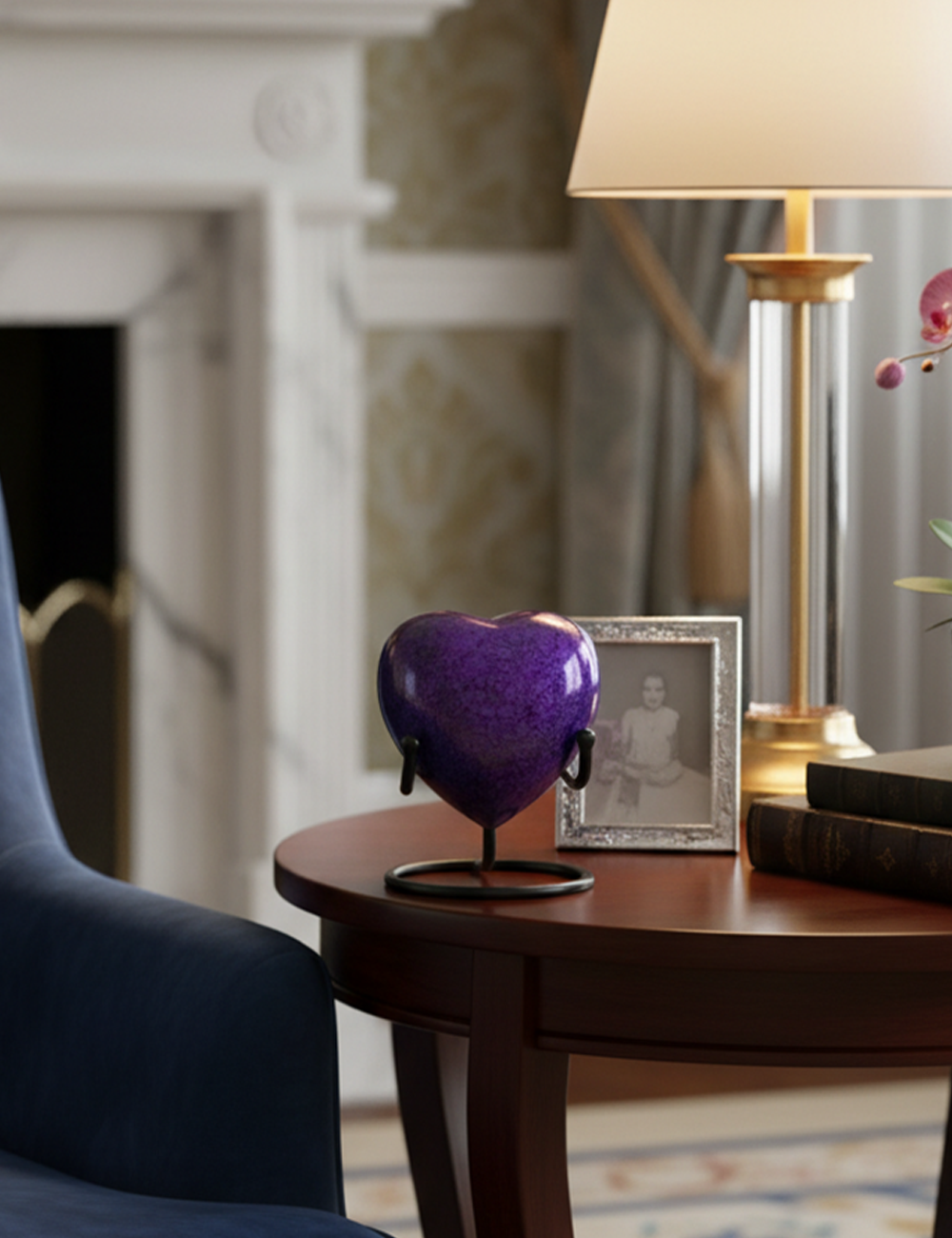 HN6013-Heart-Shaped Metal Cremation Urn with Purple Marble Color - Image 3