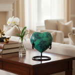 HN6014-Heart-Shaped Metal Cremation Urn with Green fire Color