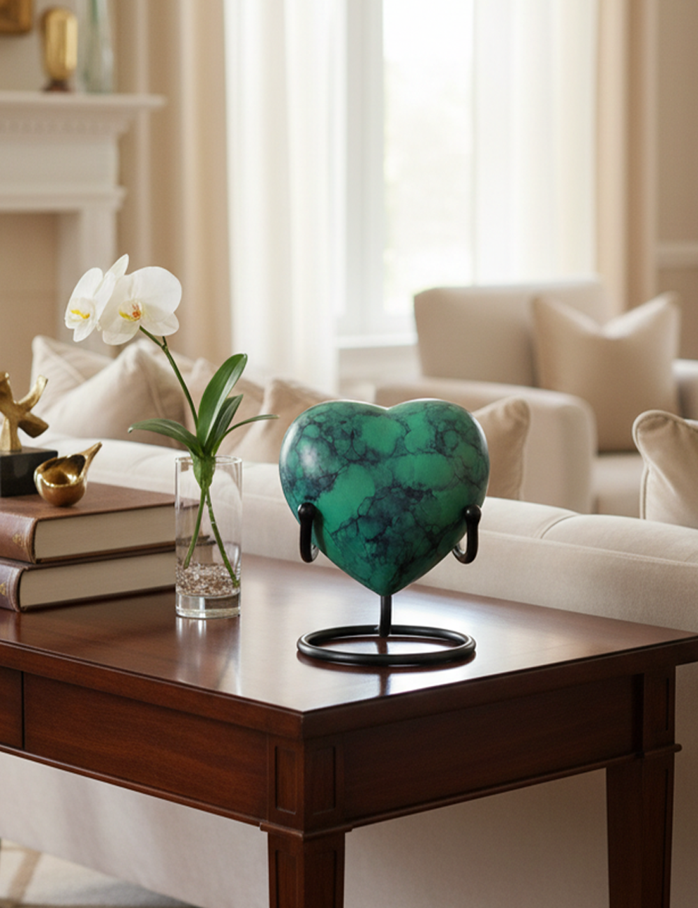 HN6014-Heart-Shaped Metal Cremation Urn with Green fire Color