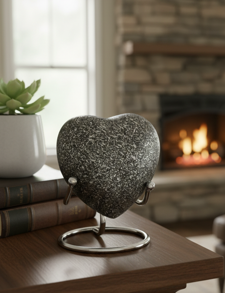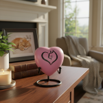 Honor loved ones with our exquisitely crafted heart-shaped metal cremation urn. 3-inch, 50ml, discreet back lid, sturdy metal stand (Gold, Black, Nickel). Premium packaging. For bulk business, contact us for customized solutions, competitive pricing. MOQ: 250pcs. Delivery: 1 month