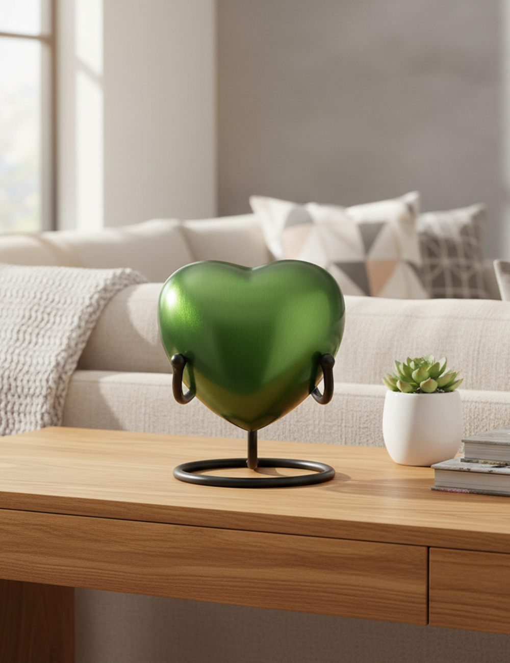 HN 6027-Heart-Shaped Metal Cremation Urn with Satin Green fast Color