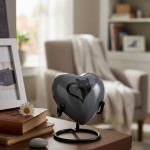 HN6030-Heart-Shaped Metal Cremation Urn with Gray Black Cat