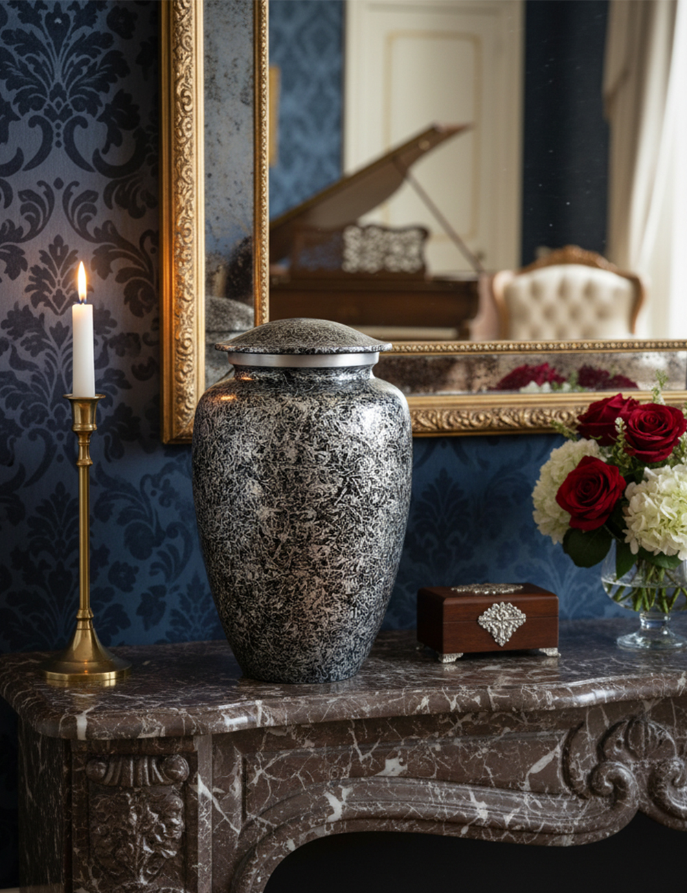 Silver Black Large Cremation Urn