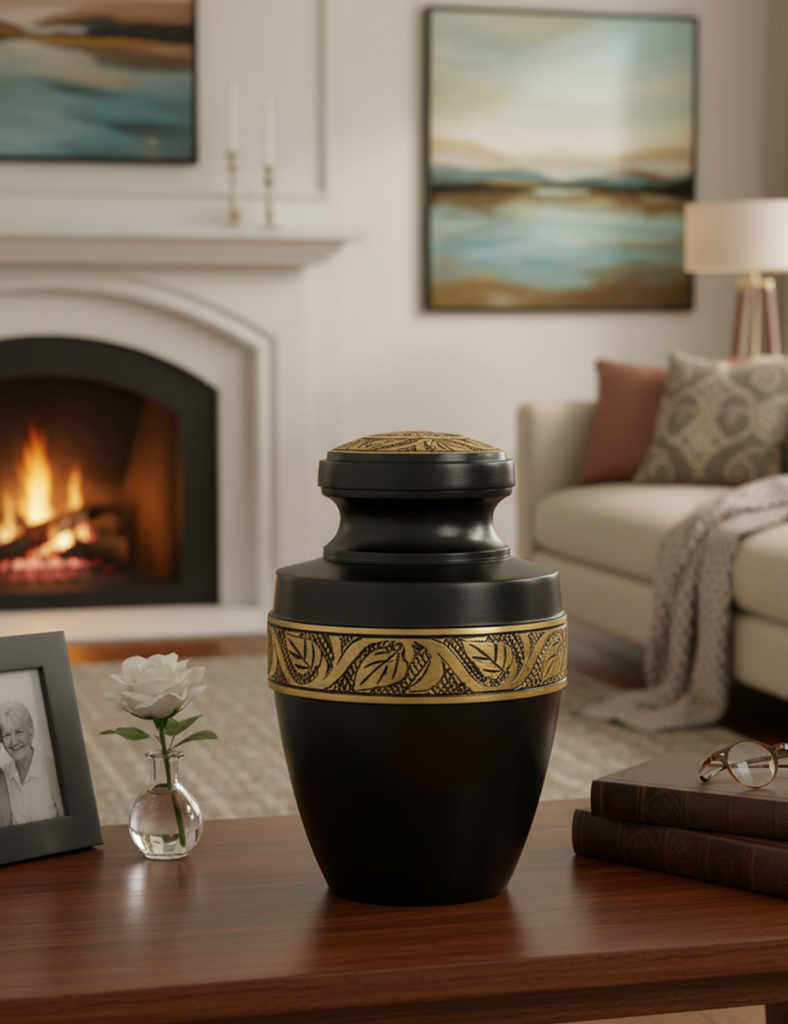 NU1003-Cremation Urn Silver embossing with black color Quote ( Customize )
