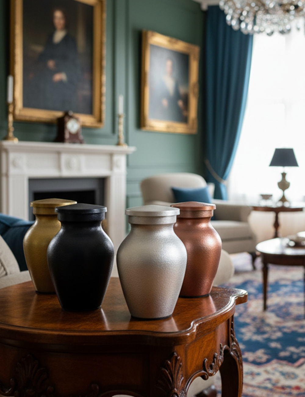 NU1003-Cremation Urn Silver embossing with black color Quote ( Customize )