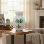 NU1004-Cremation Urn Silver embossing with White color Quote ( Customize )