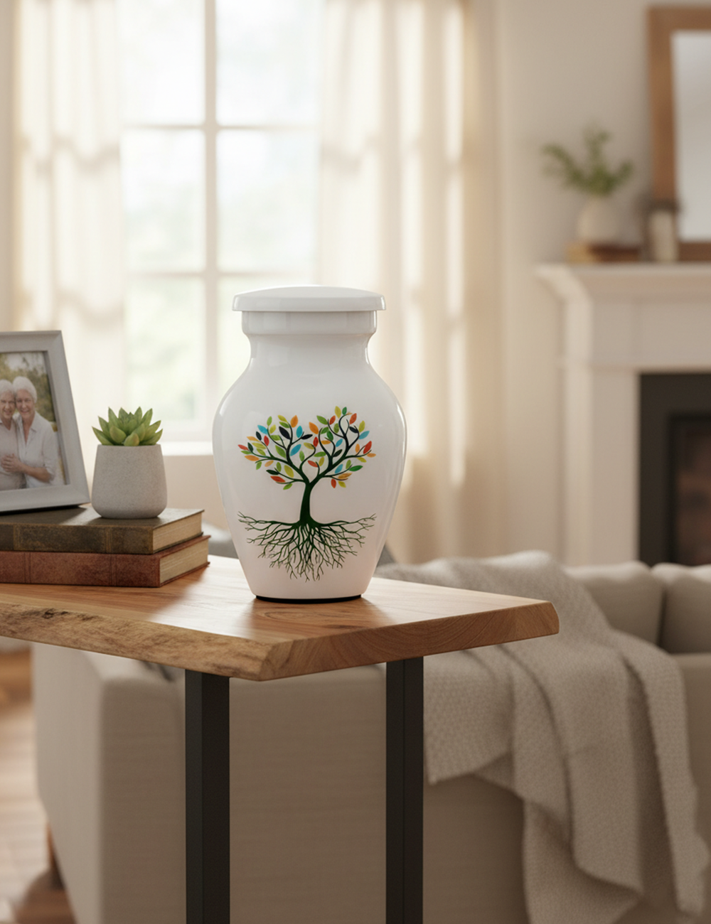 NU1004-Cremation Urn Silver embossing with White color Quote ( Customize )