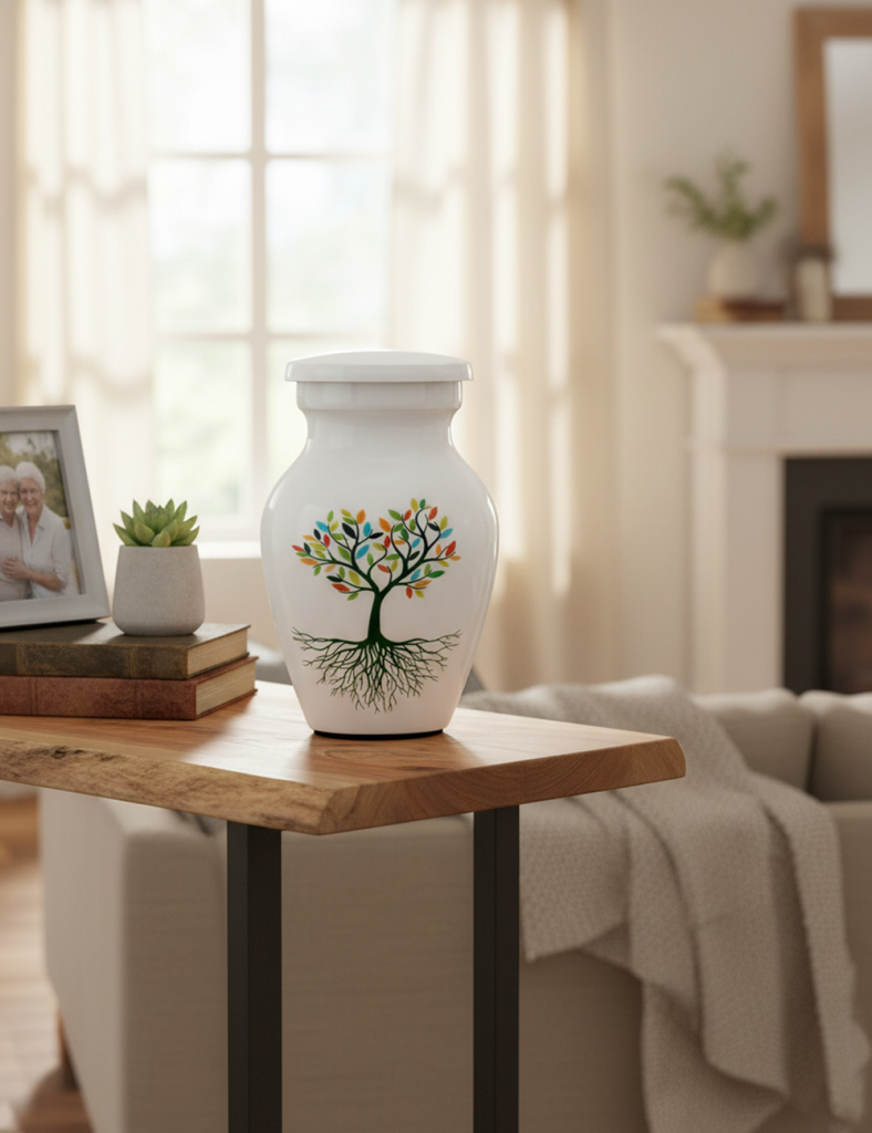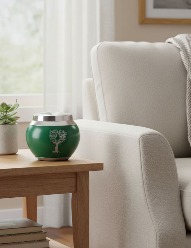 UN512-Cremation Urn Ball Shape green color with silver life tree