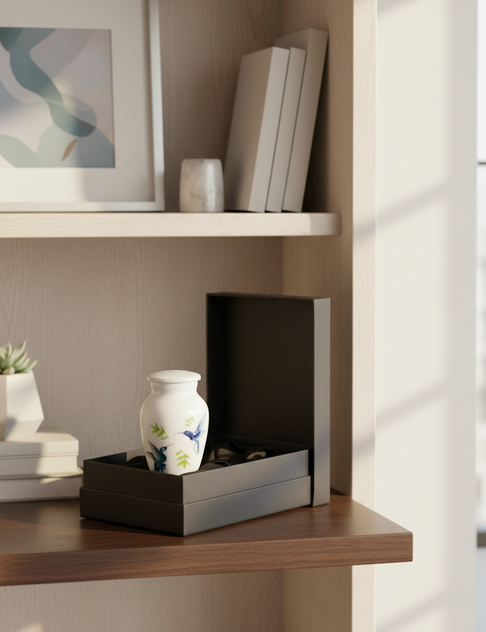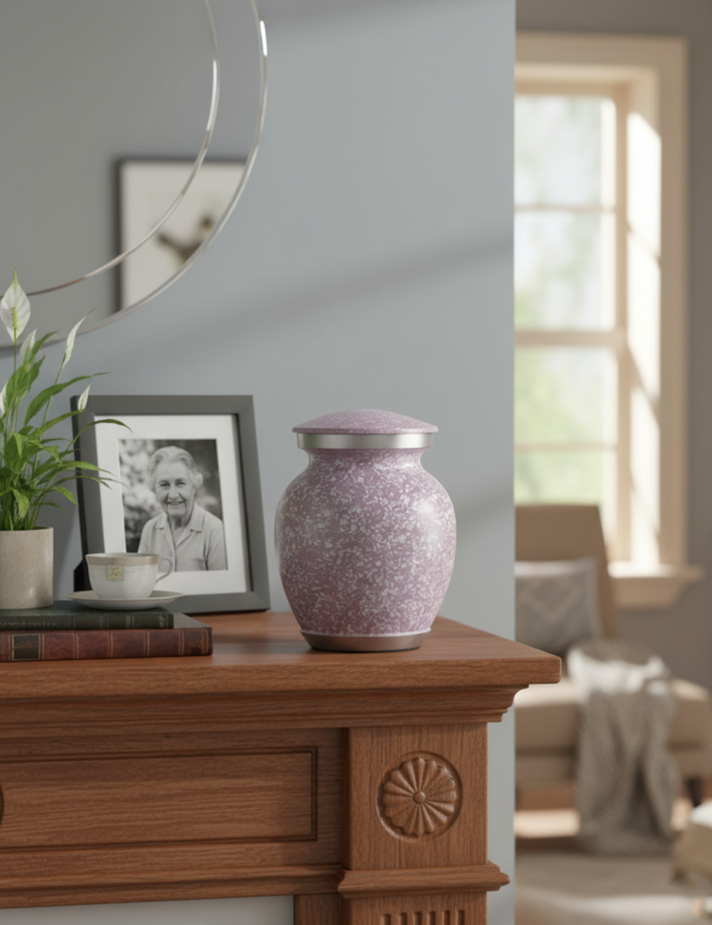 NU1000-Cremation Urn Silver Embossing with Blue Fire Design
