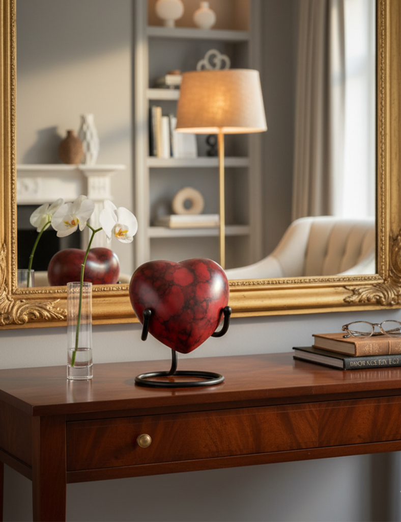 HN6002-Heart-Shaped Metal Cremation Urn with Red Fire Finish