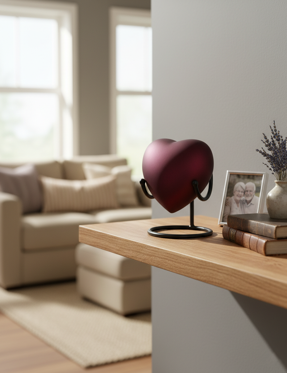 UN6016-Heart-Shaped Metal Cremation Urn with Red Wine Velvet Color